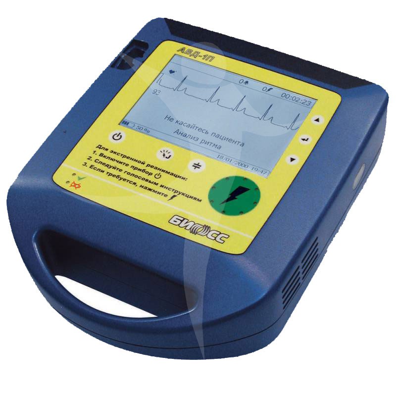 Профессиональный автоматический внешний дефибриллятор Дефибриллятор АВД-1П предназначен для мониторинга и анализа сердечного ритма пациента с последующим восстановлением регулярного сердечного ритма при возникновении жизненно опасных аритмий (фибрилляции желудочков) посредством электрического разряда.
