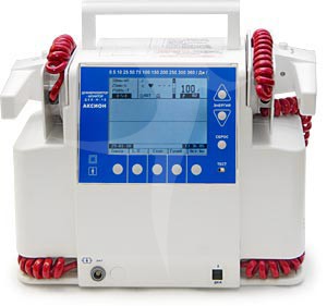 - Автоматическое ограничение тока дефибрилляции на уровне (30±10) А при сопротивлении тела пациента менее 25 Ом.