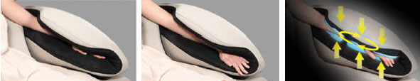 Техника “Hold & Release” использует компрессионные подушки, что позволяет сдавливать ладони и предплечья ритмичными движениями, что позволяет улучшать кровообращение по всей длине руки до самых кончиков пальцев.