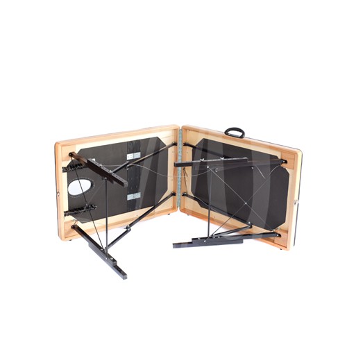 Складной массажный стол Cosmetics Master Pro объединяет в себе приятный, не лишённый изящества внешний вид и устойчивую, надежную конструкцию. Каркас из натурального бука обеспечивает большую прочность и крепость и в то же время подчёркивает, дополняет и обрамляет ложе стола. Ножки из алюминия с полимерным покрытием и система стальных тросов значительно облегчают конструкцию и придают ей ещё большую устойчивость.