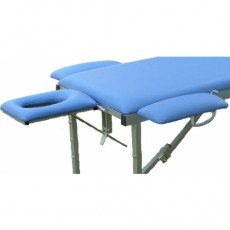 Массажный стол оснащен двумя подлокотниками для рук, которые можно размещать как в лицевой части, так и по обеим сторонам стола, в зависимости от выполняемых процедур. Подголовник может плавно изменять угол наклона и имеет специальное отверстие для лица.