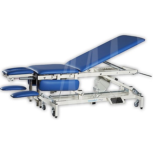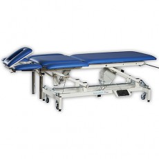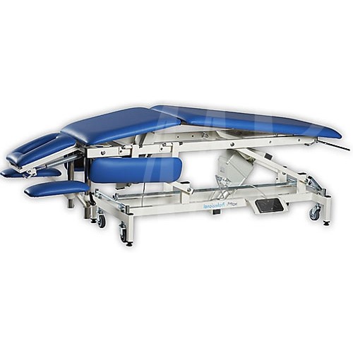 Угол наклона средней части ложа стола изменяется с помощью ступенчатой регулировки, угол наклона лицевой части - с помощью газового амортизатора. Рама стола комплектуется колесиками для легкого перемещения кушетки и регулировкой от раскачивания из-за неровности пола. Уровень высоты стола регулируется с помощью электропривода. Отличия и возможности:
