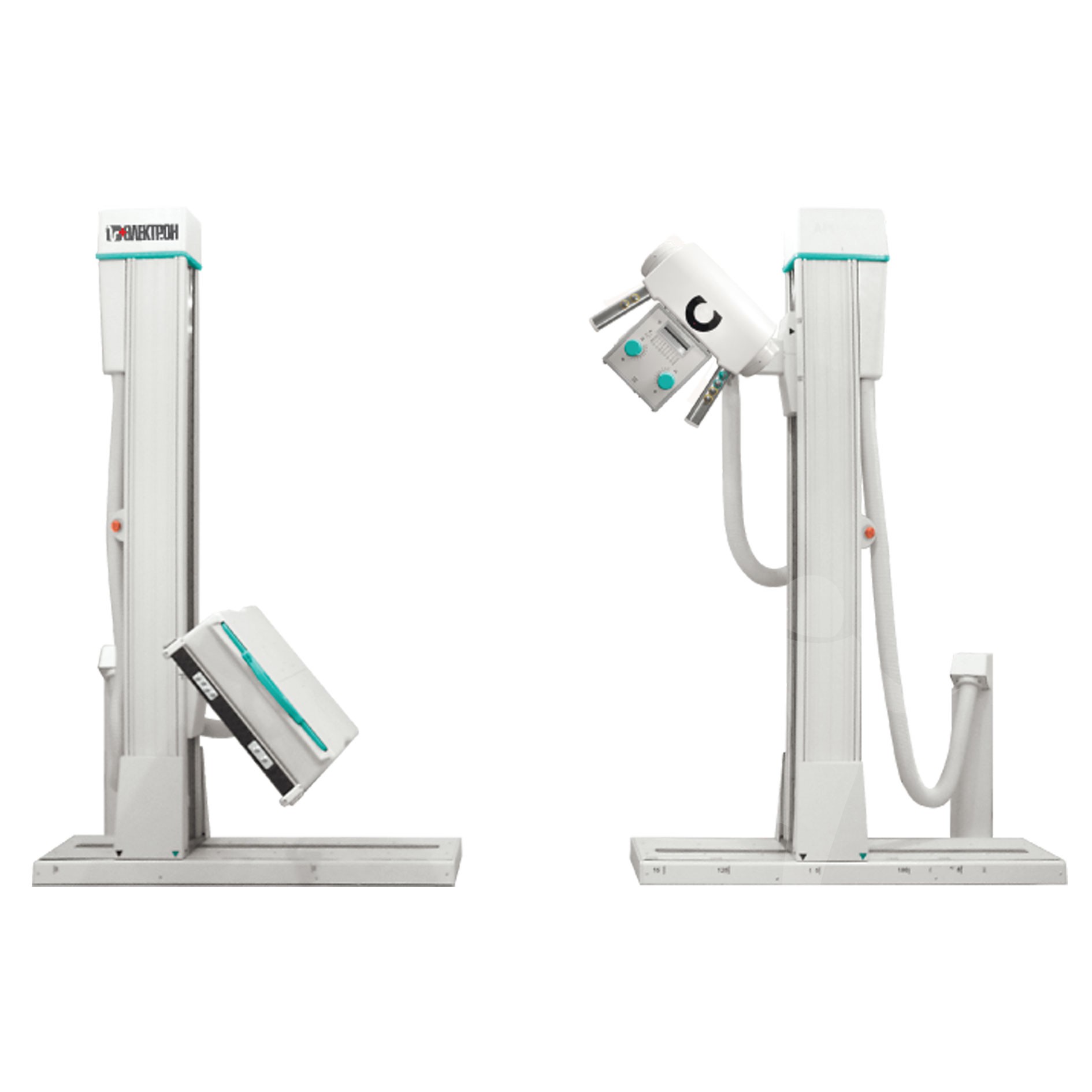Система предназначена для проведения исследований пациентов в положениях сидя, стоя и лежа. Высокая маневренность приемника и излучателя позволяет максимально удобно проводить исследования на каталке. Штатив обеспечивает съемку в латеропозиции без дополнительных приспособлений.