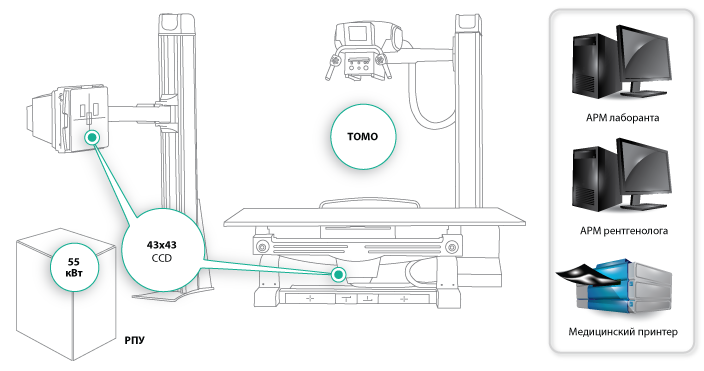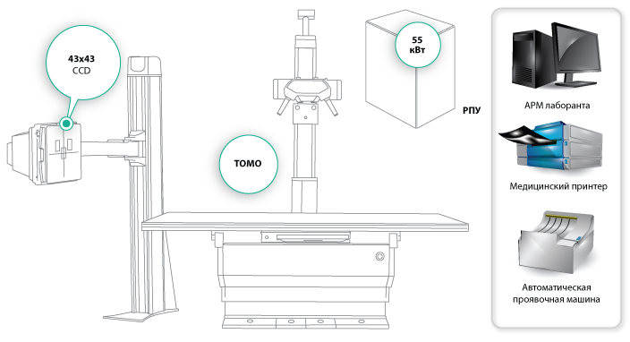 Аппарат на два рабочих места — переходная комплектация Простое и надежное оборудование с расширенными функциональными возможностями. Приемник на вертикальной стойке обеспечивает получение полноформатных цифровых снимков высокого разрешения.