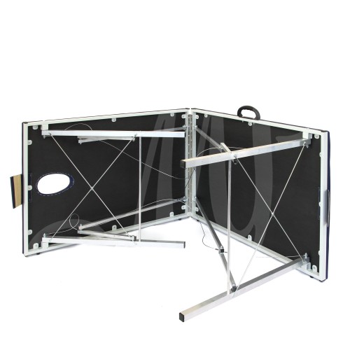 Это раскладной массажный стол увеличенного размера, с прорезью для лица. Его прочная и лёгкая конструкция построена на базе каркаса из стальной трубы и системы тросов. Для снижения веса ножки стола выполнены из легкого алюминиевого сплава.